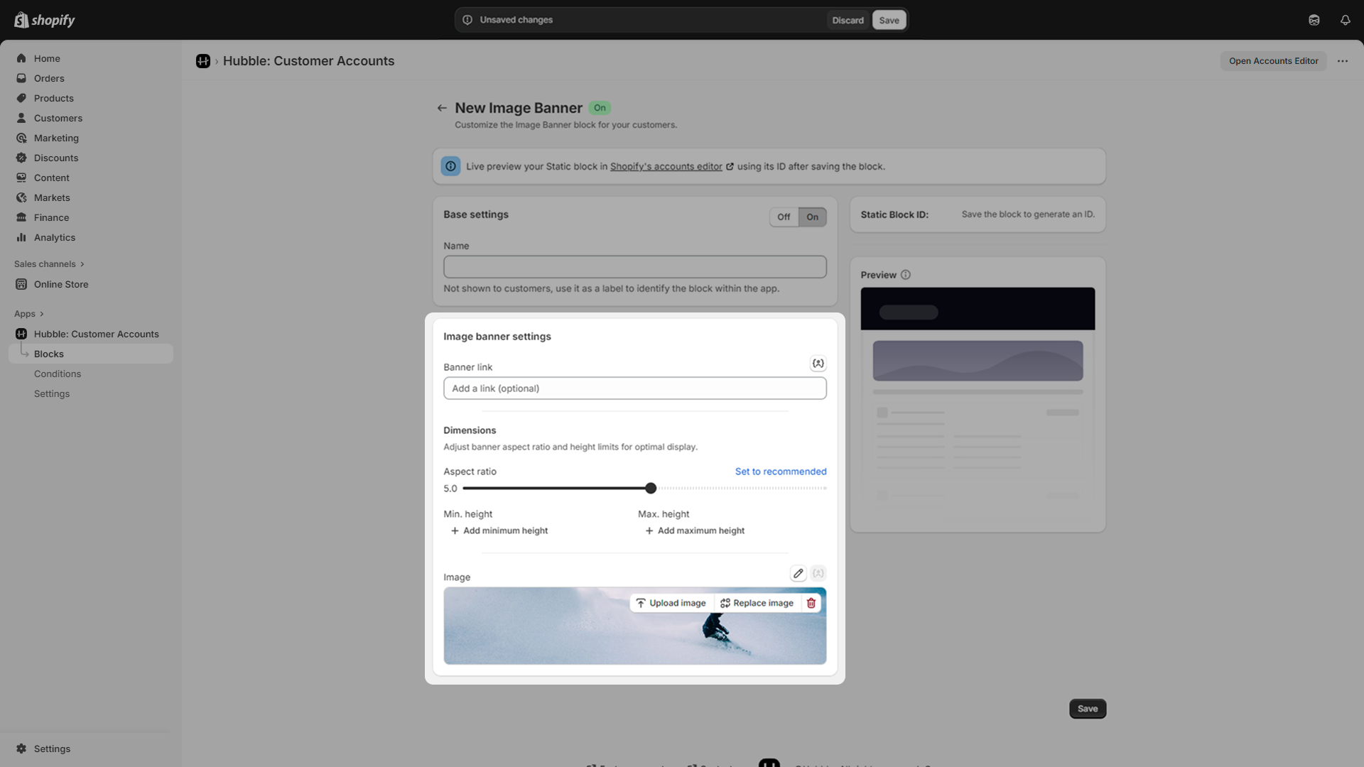 The Image Banner Block is perfect for showcasing visuals that capture attention. Use it to highlight promotions, featured collections, or branded messages directly on your customer account pages.